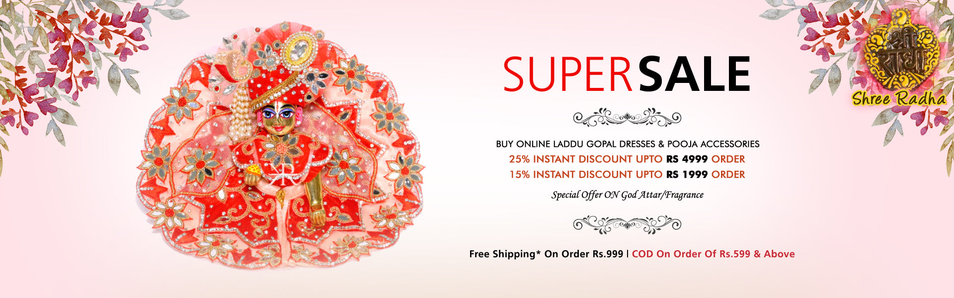 If you would like to experience the best of online shopping Krishna Dresses, Designer Laddu Gopal Dress, Radha Krishna Dresses, Durga JI Dresses, Laddu Gopal Accessories, Laddu Gopal Ornaments, Pooja Ghar Items, Mukut Mala, Bansuri, Necklace, Alcohol Free God Attar/Fragrance in Mathura Varindavan, you are at the right place. Kridhas is the ultimate destination for God Dresses, being host to a wide array of merchandise including God clothing, accessories, jewellery, Laddu Gopal care products and more. It is time to redefine your style statement with our treasure-trove of trendy items. Our online store brings you the latest in designer products straight out of other places. You can shop online at Kridhas from the comfort of your home and get your favourites delivered right to your doorstep.