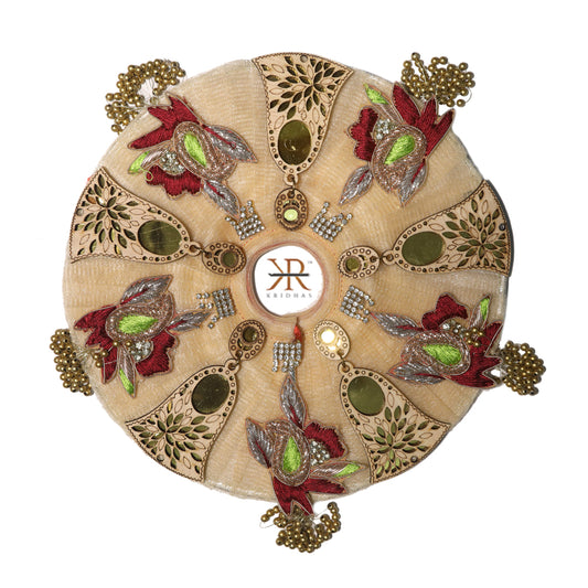 Designer Peach Kundan Zardozi Patch Work Laddu Gopal Pugree