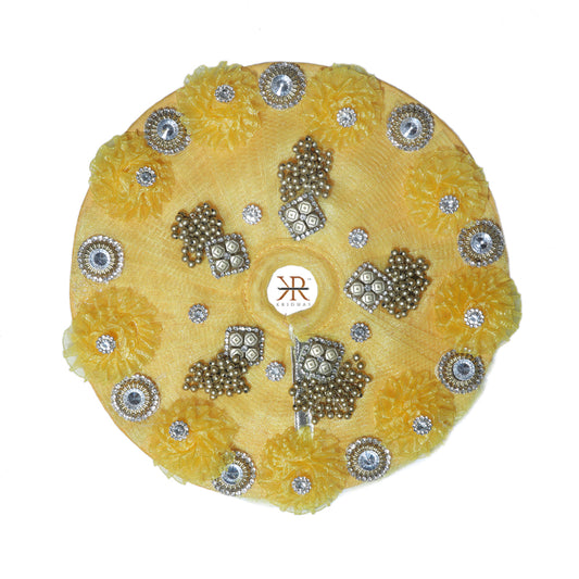 Designer Yellow Flower Stone Patch Work Laddu Gopal Pugree
