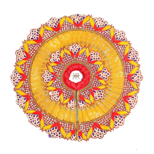 Designer Yellow Red Heavy Stone Patch Work Laddu Gopal Pugree