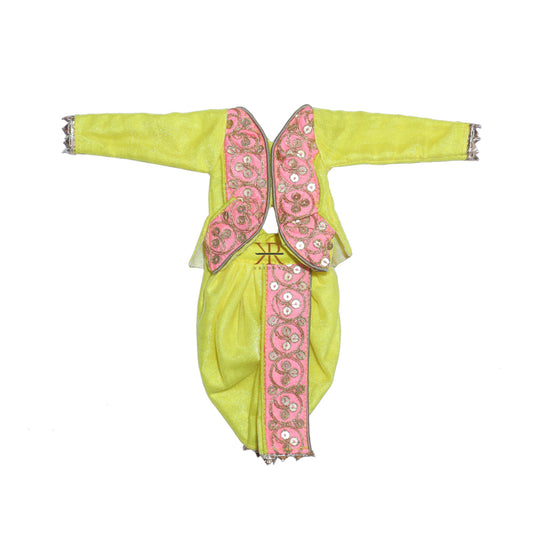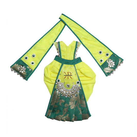 Lemon Zari Thread Lace Work Radha Krishna Dress
