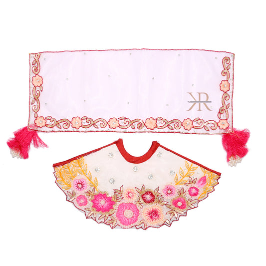 Designer White Red Stone Patch Work Radha Krishna Dress