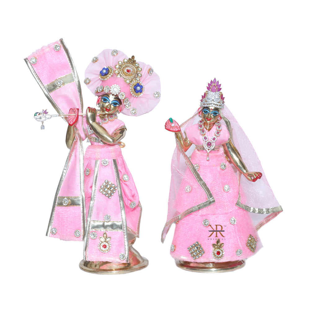 Designer Pink Stone Patch Work Radha Krishna Dress